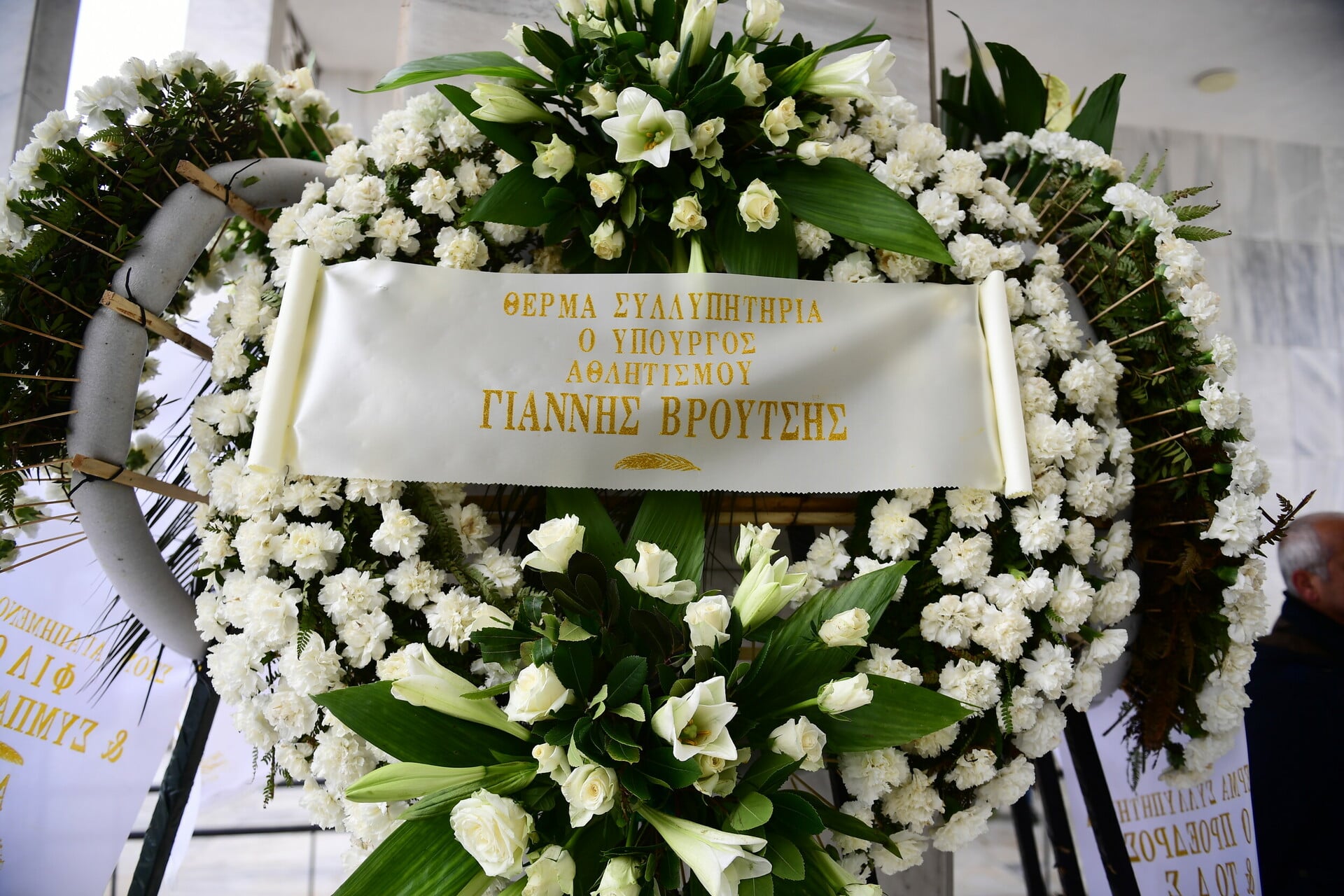 Στεφάνια κατέθεσαν, μεταξύ άλλων, η ΑΕΚ και ο Πανελλήνιος, οι ομάδες με τις οποίες συνδέθηκε περισσότερο αγωνιστικά, τιμώντας τη μνήμη του. Στην τελετή παρευρέθηκαν εκπρόσωποι της πολιτείας και του αθλητισμού, ανάμεσά τους ο Γιάννης Βρούτσης, ο Νίκος Χαρδαλιάς, ο Βασίλης Κικίλιας και ο Γιώργος Μαυρωτάς, καθώς και παλαίμαχοι αθλητές και συνεργάτες του από διαφορετικές περιόδους της καριέρας του.