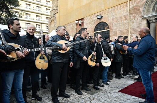 Με γνωστά τραγούδια του Βασίλη Καρρά και θερμό χειροκρότημα είπαν το αντίο στον λαϊκό τραγουδιστή όσοι βρίσκονταν έξω από τον ιερό ναό του Θεού Σοφίας στη Θεσσαλονίκη.