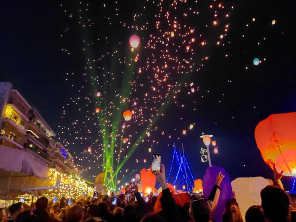 Γέμισε με 11.000 αναμμένα φαναράκια ο ουρανός του Βόλου, σε μια ακόμη εκδήλωση για τις γιορτές των Χριστουγέννων.