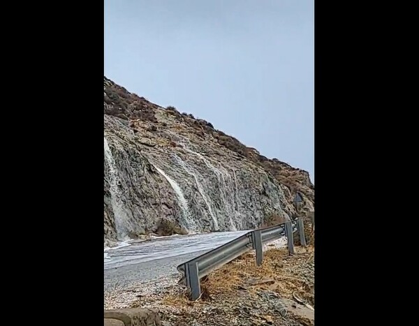Σήμερα, ισχυρή βροχή έπεσε στη Σέριφο, με αποτέλεσμα τα νερά της βροχής να σχηματίζουν ρυάκια στα ξερά βουνά και στους δρόμους.