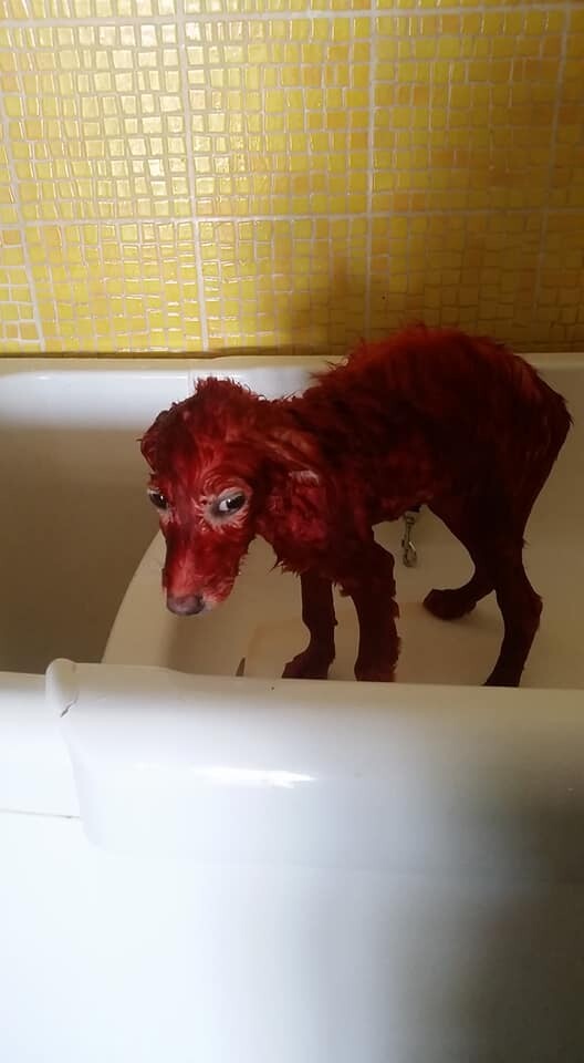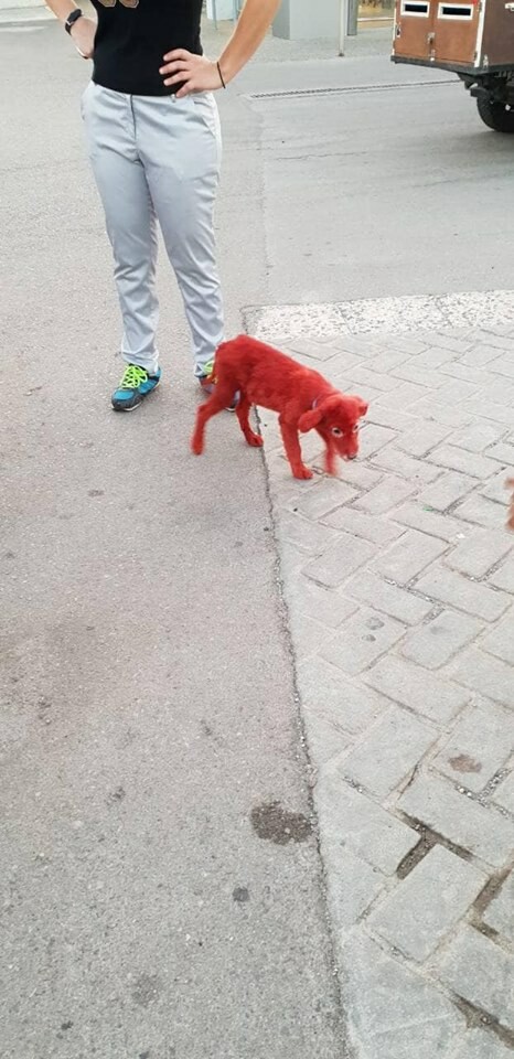 Θλίψη και οργή προκαλεί η δημόσια καταγγελία που έκαναν φιλόζωοι καθώς βρήκαν ένα κουτάβι βαμμένο με κόκκινη μπογιά σε όλο του το σώμα.