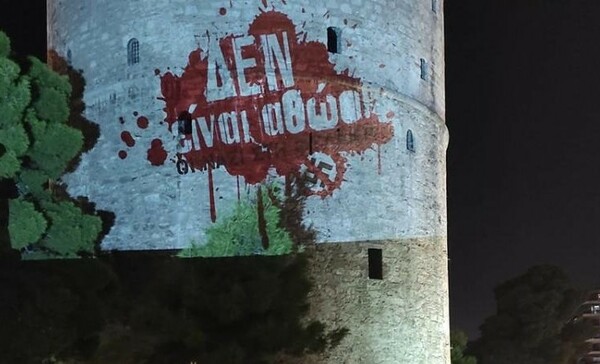 «Δεν είναι αθώοι. Οι ναζί στη φυλακή». Το μήνυμα αυτό εμφανίστηκε στον Λευκό Πύργο, σε μία δράση λίγο πριν από την απόφαση στη δίκη της Χρυσής Αυγής.