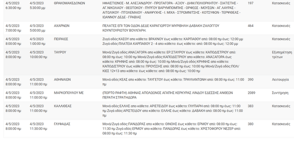 Συγκεκριμένα, όπως αναφέρει ο ΔΕΔΔΗΕ θα υπάρξουν προγραμματισμένες διακοπές ρεύματος σε αρκετές περιοχές του κέντρου της Αθήνας, και πέριξ αυτού και επίσης σε Θρακομακεδόνες, Αχαρναί, Πειραιά, Ταύρο, Πορτοράφτη, Καλλιθέα. Γλυφάδα, Κορυδαλλό, Ρέντη, Κορωπί, Χαλάνδρι και Γραμματικό,