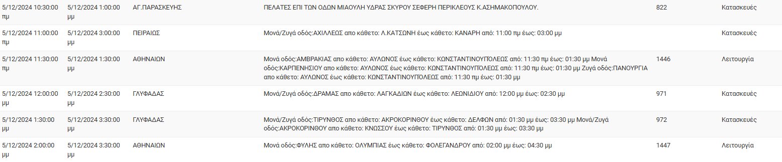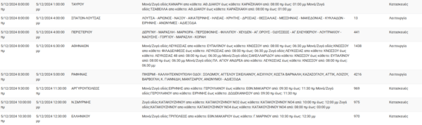 Αναλυτικά οι διακοπές ρεύματος θα γίνουν στις εξής περιοχές: