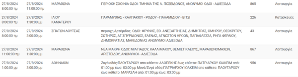 Διακοπές ρεύματος είναι προγραμματισμένες να σημειωθούν σήμερα, Τρίτη 27 Αυγούστου, σε επτά περιοχές της Αττικής σύμφωνα με την ανακοίνωση του ΔΕΔΔΗΕ.