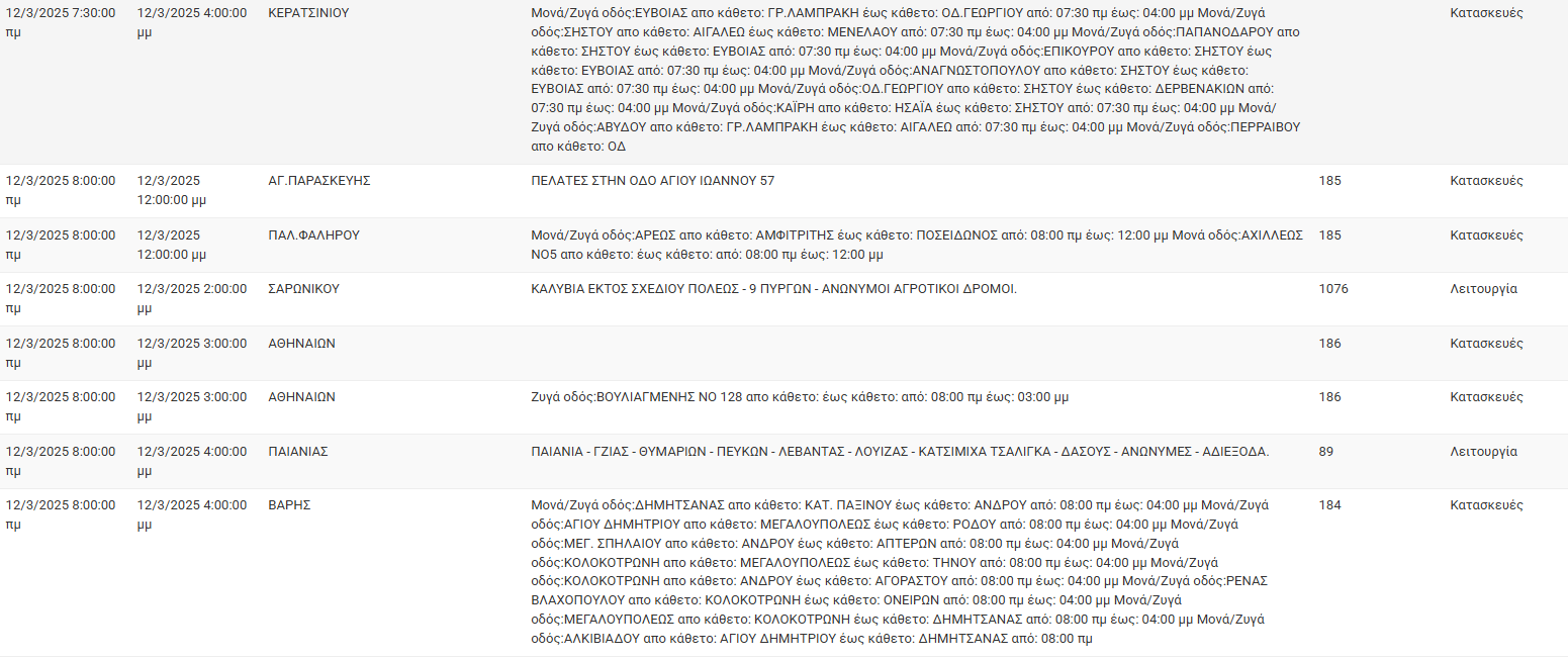 Όπως αναφέρει ο ΔΕΔΔΗΕ, οι διακοπές ρεύματος πραγματοποιούνται λόγω έργων συντήρησης, ενίσχυσης ή αναβάθμισης δικτύων, τα οποία απαιτούν προσωρινές διακοπές της ηλεκτροδότησης.