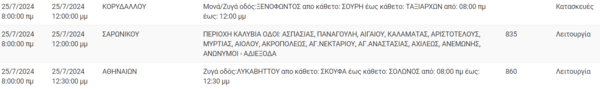 Διακοπές ρεύματος αναμένεται να σημειωθούν σήμερα, Πέμπτη 25 Ιουλίου, σε 12 περιοχές της Αττικής σύμφωνα με την ανακοίνωση του ΔΕΔΔΗΕ.