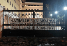 Αργά το βράδυ της Τετάρτης, μέλη του Φεμινιστικού Τομέα Ρουβίκωνα τοποθέτησαν πανό και πέταξαν τρικάκια στην είσοδο του κτιρίου της Ιεράς Συνόδου, στην Κηφισιά, σε μια διαμαρτυρία για την εγκύκλιο κατά των αμβλώσεων, που εστάλη στις εκκλησίες.