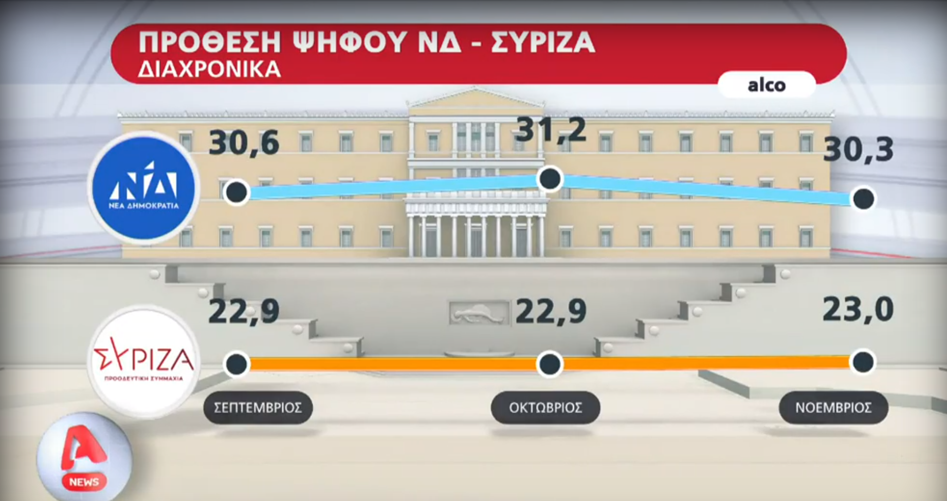 7,3 μονάδες η διαφορά ΝΔ- ΣΥΡΙΖΑ