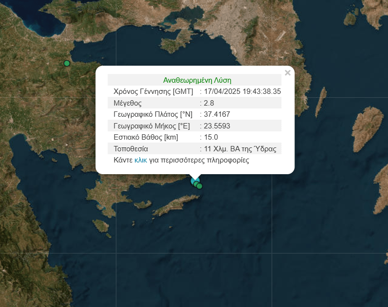 Δύο σεισμικές δονήσεις σημειώθηκαν το βράδυ της Μεγάλης Πέμπτης στη θαλάσσια περιοχή ανοιχτά του Πόρου, προκαλώντας ανησυχία και σε κατοίκους περιοχών της Αττικής.