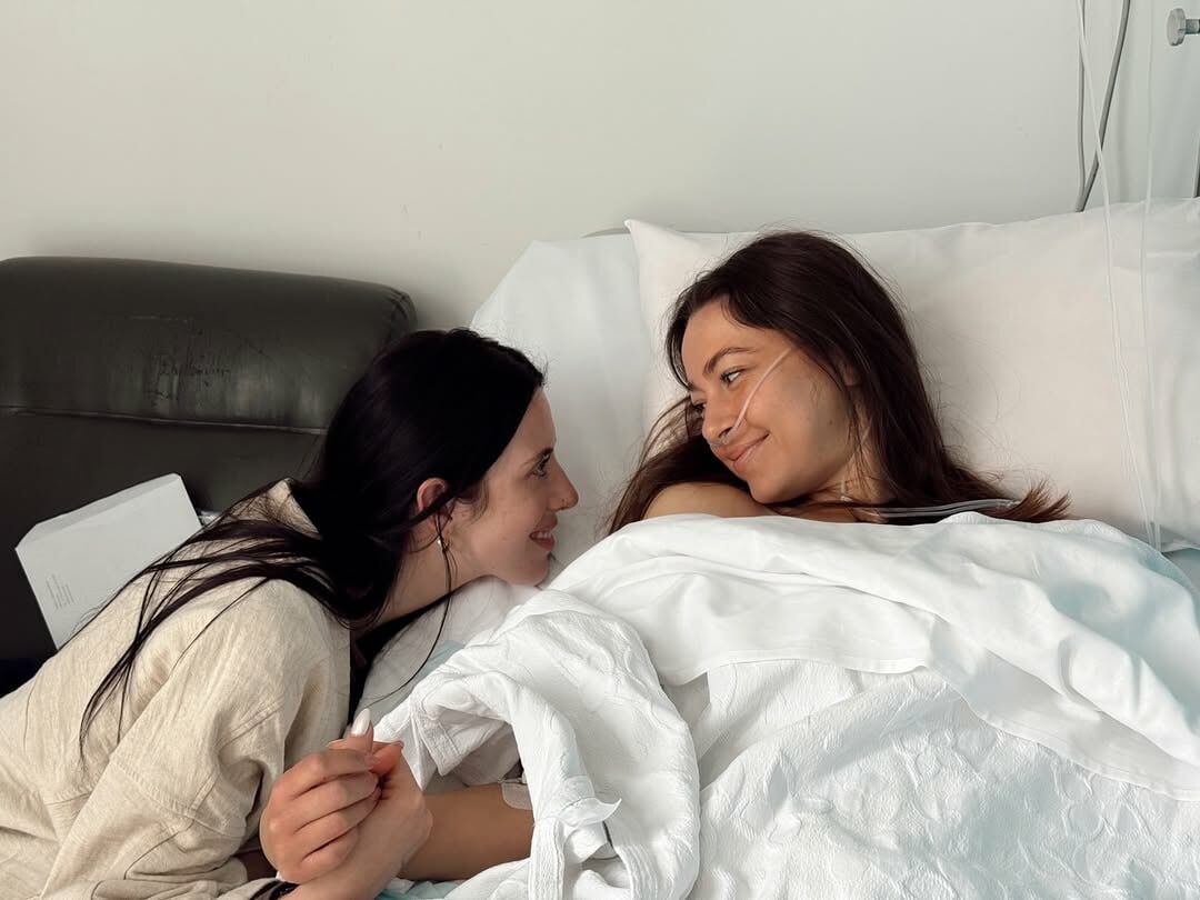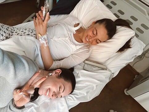 Η ανάρτηση συνοδεύεται από μερικές φωτογραφίες της ίδιας στο νοσοκομείο, με τους αγαπημένους της στο πλευρό της, μεταξύ των οποίων και η Έλενα Χριστοπούλου, η οποία είναι και μάνατζέρ της.