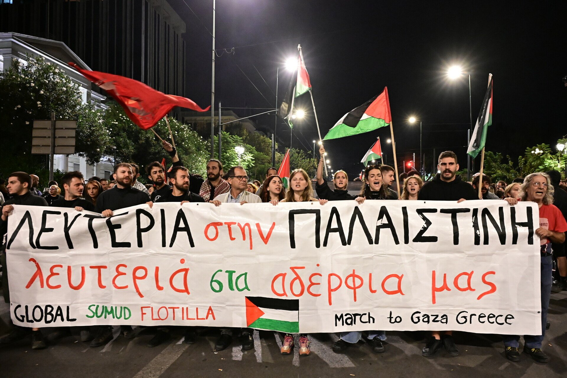 Παρόντες ήταν επίσης εκπρόσωποι της «Νέας Αριστεράς» και μέλη συλλογικοτήτων όπως οι «March to Gaza», «Global Sumud Flotilla» και «Συμμαχία Σταματήστε τον Πόλεμο».