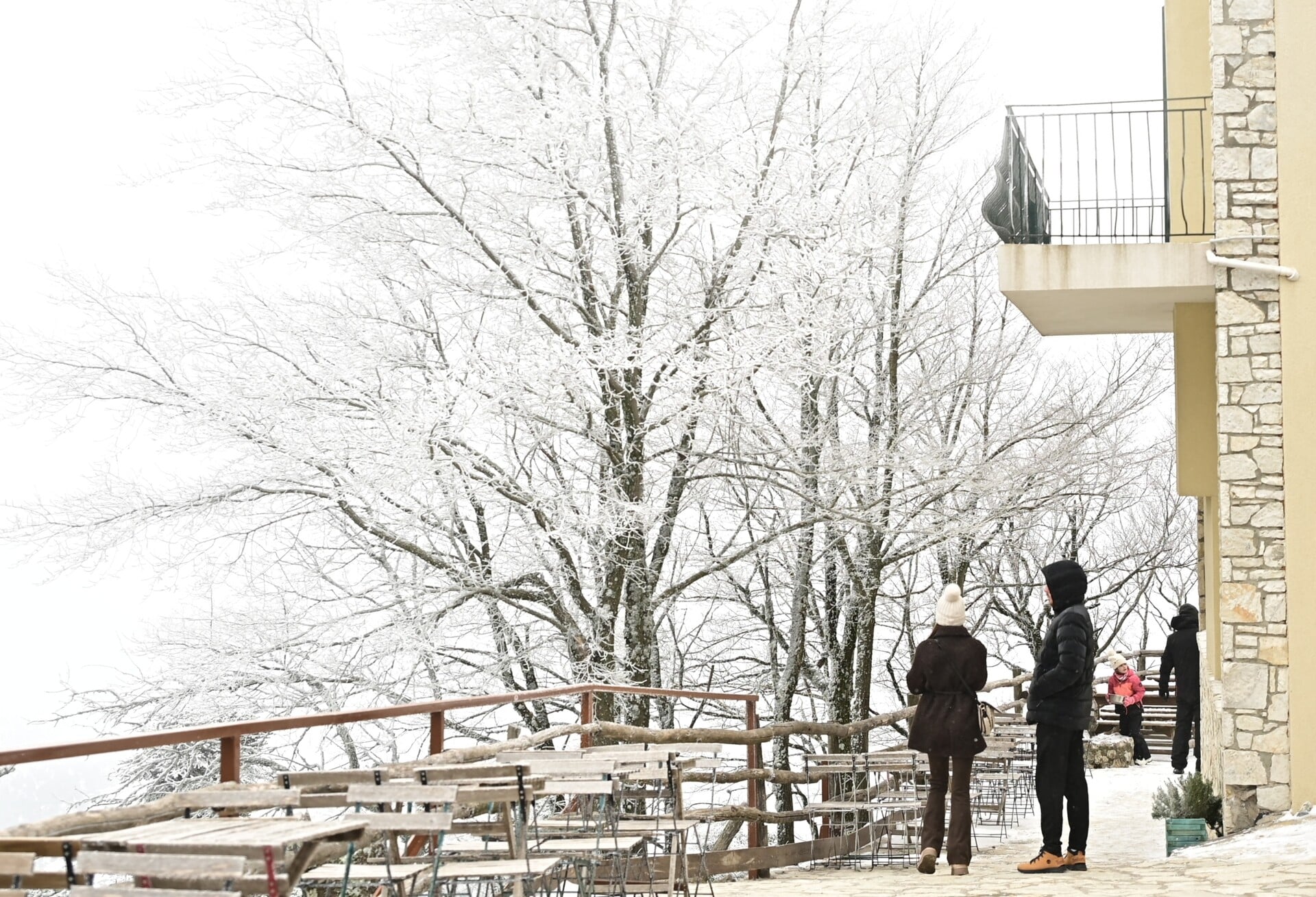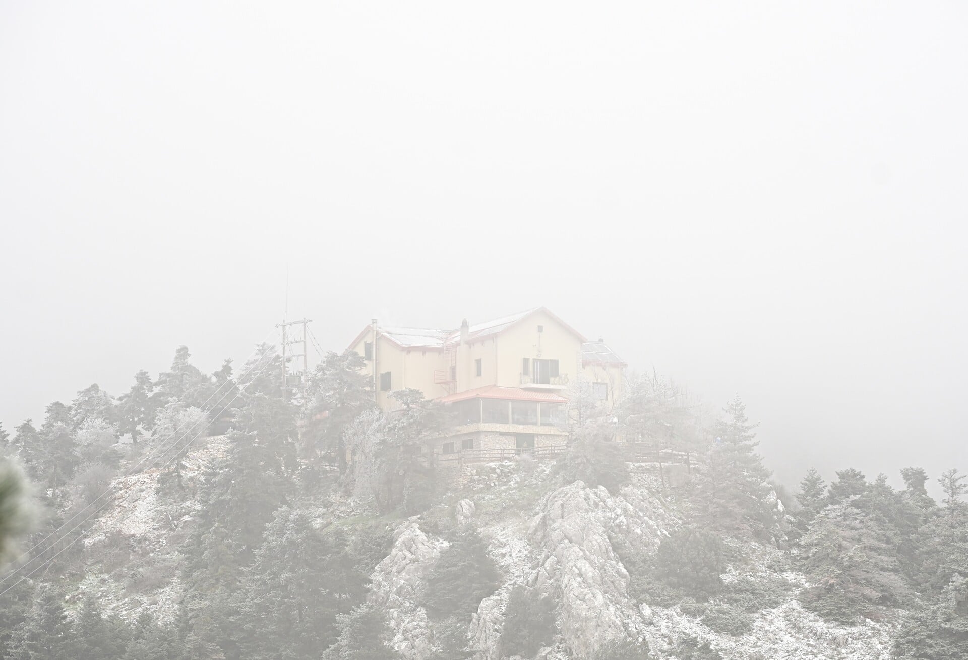 Η θερμοκρασία στο καταφύγιο έφθασε τους -3 βαθμούς Κελσίου, με το τοπίο να μοιάζει ολόλευκο.