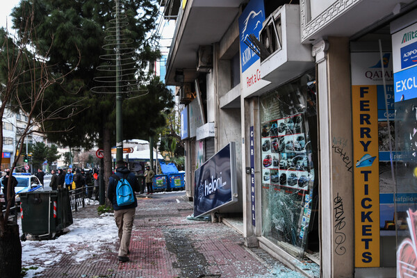 «Βομβαρδισμένο» τοπίο θυμίζει η περιοχή περιμετρικά του κτιρίου που σημειώθηκε η έκρηξη, το πρωί της Τετάρτης, επί της λεωφόρου Συγγρού, κοντά στους Στύλους του Ολυμπίου Διός.