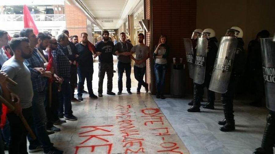 Μετά την εκτόνωση της έντασης, οι διαδηλωτές βγήκαν συντεταγμένα από το εμπορικό κέντρο και συναντήθηκαν με την υπόλοιπη πορεία.