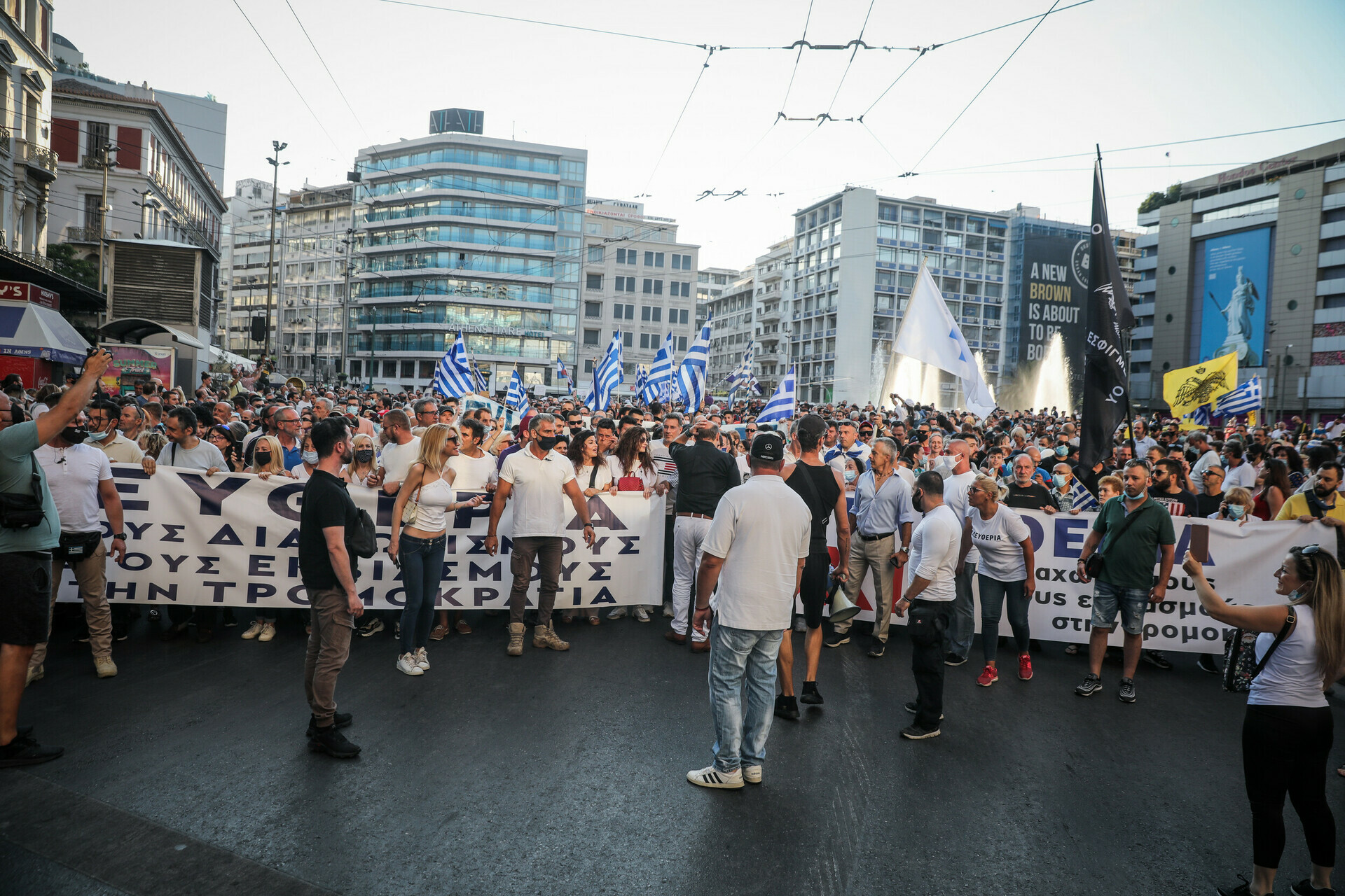 Ένταση επικράτησε πριν λίγο στο Σύνταγμα μεταξύ της αστυνομίας και διαδηλωτών κατά του υποχρεωτικού εμβολιασμού και άλλων μέτρων της κυβέρνησης για την αντιμετώπιση της πανδημίας κορωνοϊού.