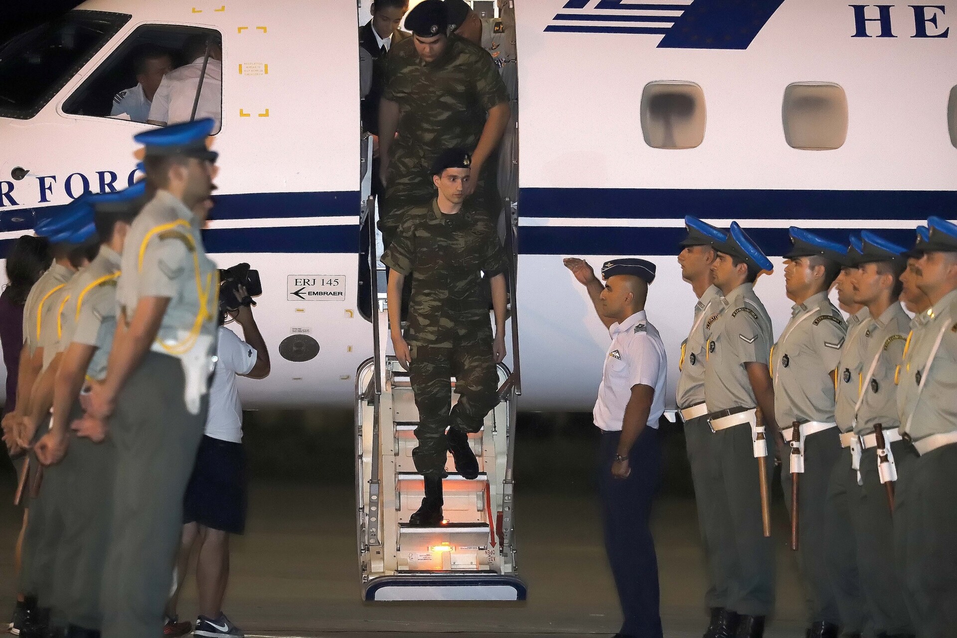Με το πρωθυπουργικό αεροσκάφος προσγειώθηκαν στη Θεσσαλονίκη, λίγο μετά τις 3:30 π.μ, οι δύο Έλληνες στρατιωτικοί Άγγελος Μητρετώδης και Δημήτρης Κούκλατζης.