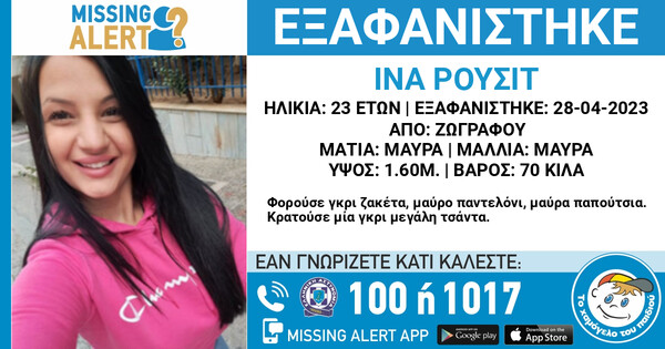 Στην ανακοίνωσή του το Χαμόγελο του Παιδιού αναφέρει πως «Στις 28/04/2023, πρωινές ώρες, η Ίνα Ρουσίτ, 23 ετών εξαφανίστηκε από την περιοχή Ζωγράφου, στην Αθήνα. Το «Χαμόγελο του Παιδιού» ενημερώθηκε για την εξαφάνιση της Ίνα Ρουσίτ και προχώρησε στη δημοσιοποίηση των στοιχείων της ενήλικης, κατόπιν αιτήματος της οικογένειας της, καθώς συντρέχουν λόγοι οι οποίοι θέτουν τη ζωή της σε κίνδυνο» αναφέρει το Χαμόγελο του Παιδιού.