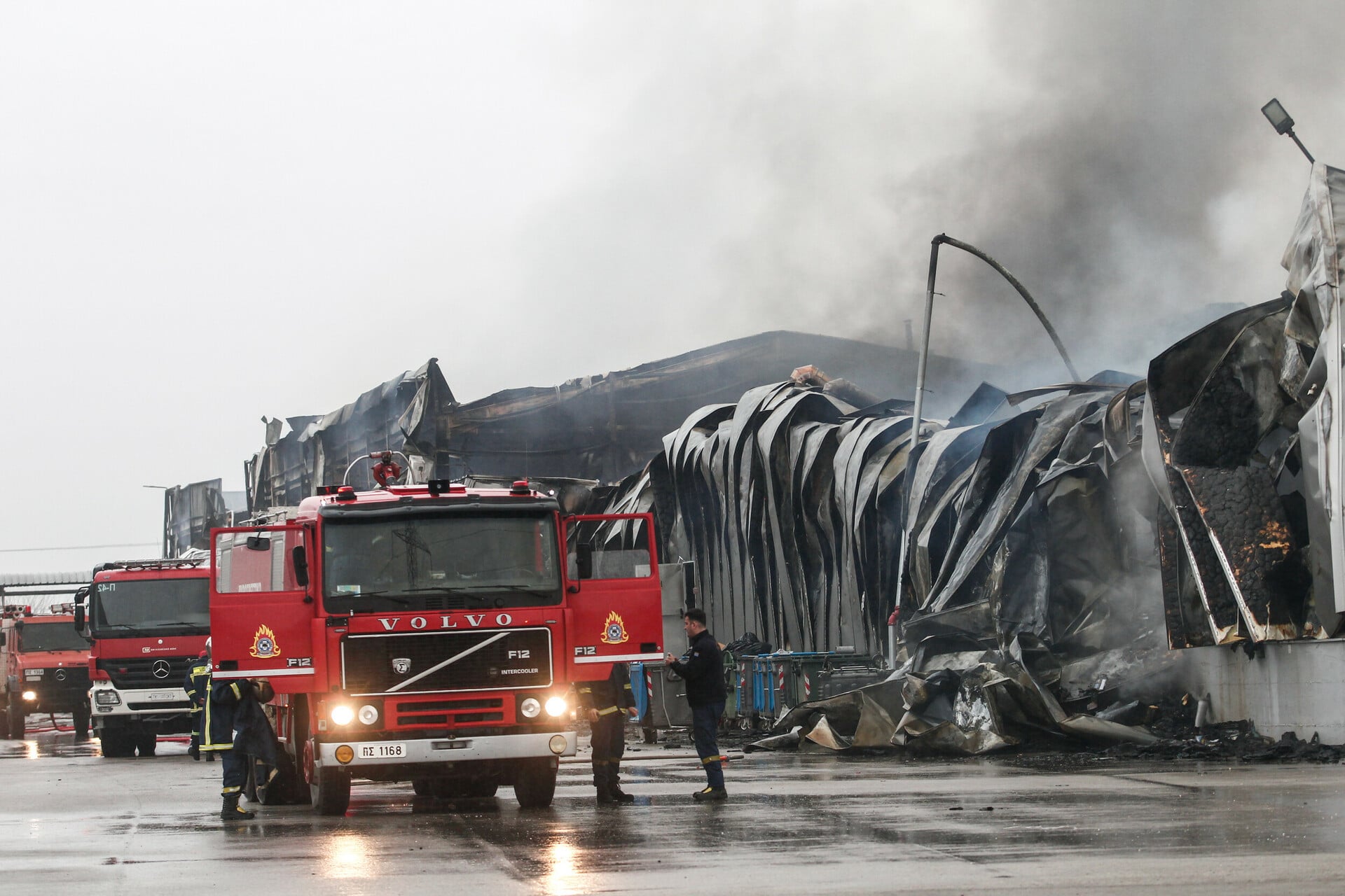 Φωτ. από την επιχείρηση της κατάσβεσης της φωτιάς στο εργοστάσιο στα Τρίκαλα / EUROKINISSI