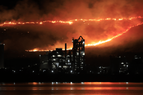 Η φωτιά κινείται στην περιοχή νότια- νοτιοανατολικά του εργοστασίου της ΑΓΕΤ Ηρακλής στον δήμο Αλιβερίου- Κύμης, χωρίς όμως να απειλεί το εργοστάσιο, σύμφωνα με την πυροσβεστική, καθώς οι φλόγες κινούνται σε αρκετή απόσταση προς την αντίθετη κατεύθυνση, στον ορεινό όγκο, ενώ πνέουν άνεμοι βορειοδυτικοί, περίπου 3 μποφόρ.