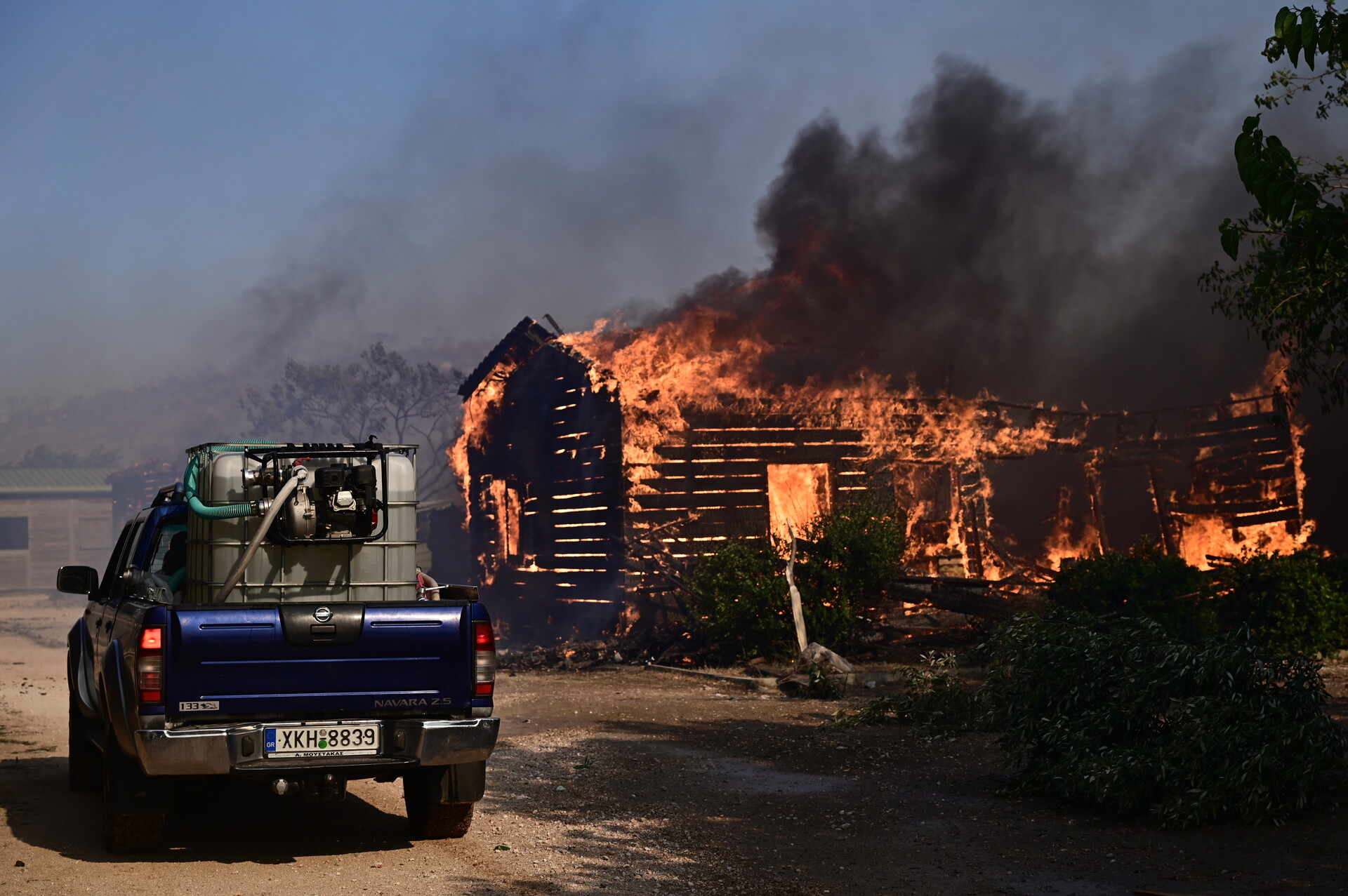 Διακόπηκε η κυκλοφορία των οχημάτων και στην παλιά εθνική οδό Αθηνών- Κορίνθου, λόγω της φωτιάς στο Λουτράκι.