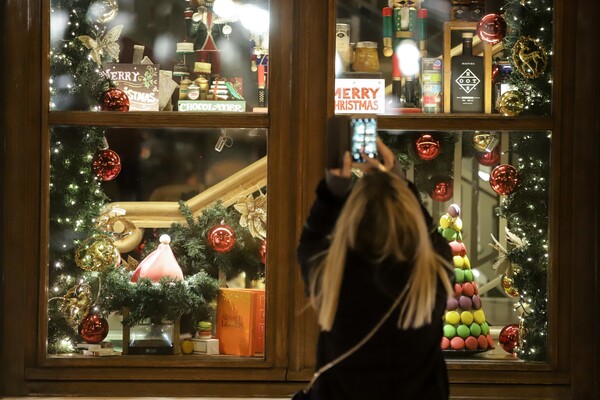 Μπορεί ακόμη το δέντρο στο Σύνταγμα να μην είναι έτοιμο, αλλά η Αθήνα έχει μπει για τα καλά σε ρυθμό Χριστουγέννων και το βράδυ η πόλη έχει μεταμορφωθεί.