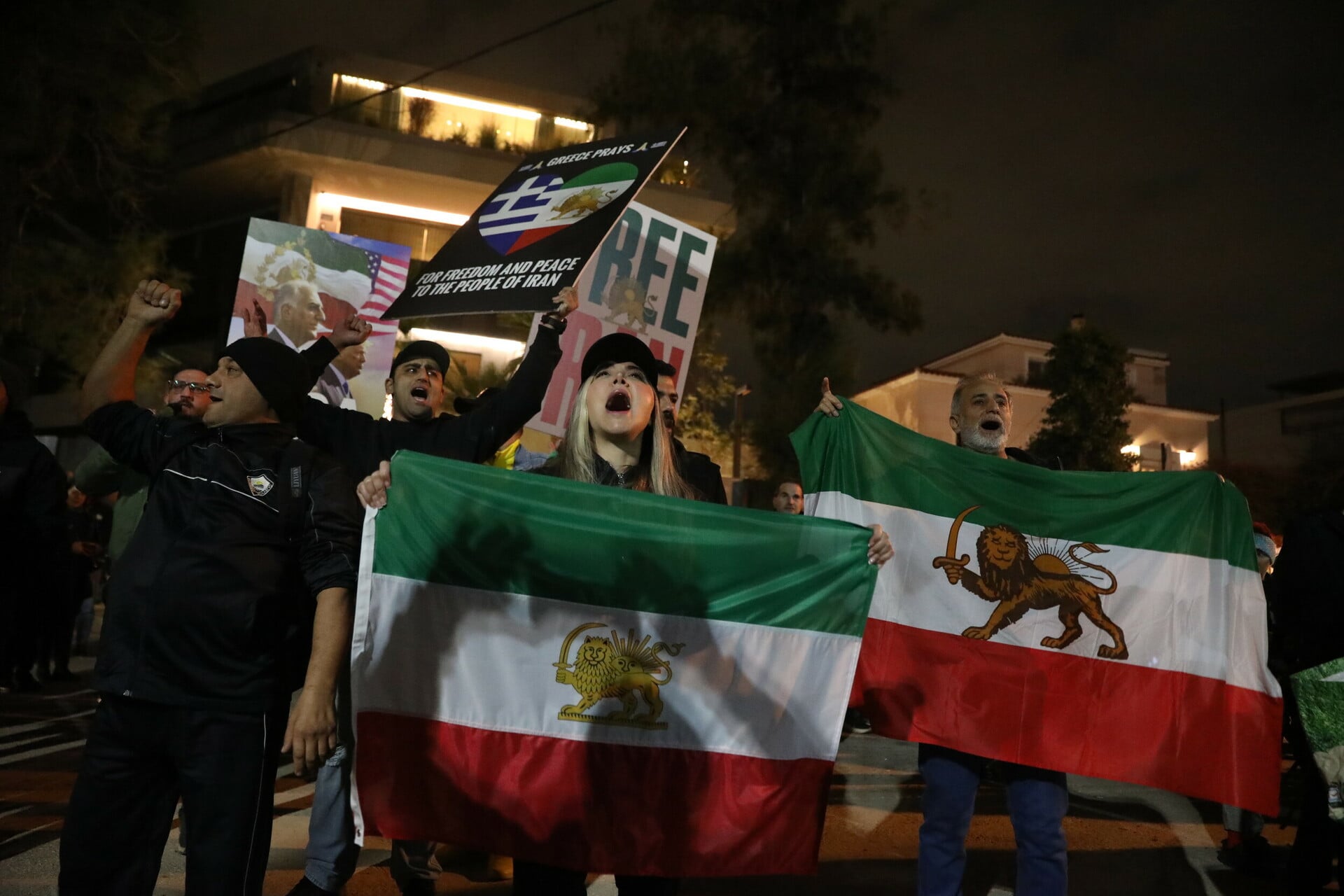 Στην πρωτεύουσα, Ιρανοί που ζουν στην Ελλάδα μαζί με Έλληνες πολίτες που στάθηκαν στο πλευρό τους συγκεντρώθηκαν έξω από την πρεσβεία του Ιράν στο Ψυχικό.