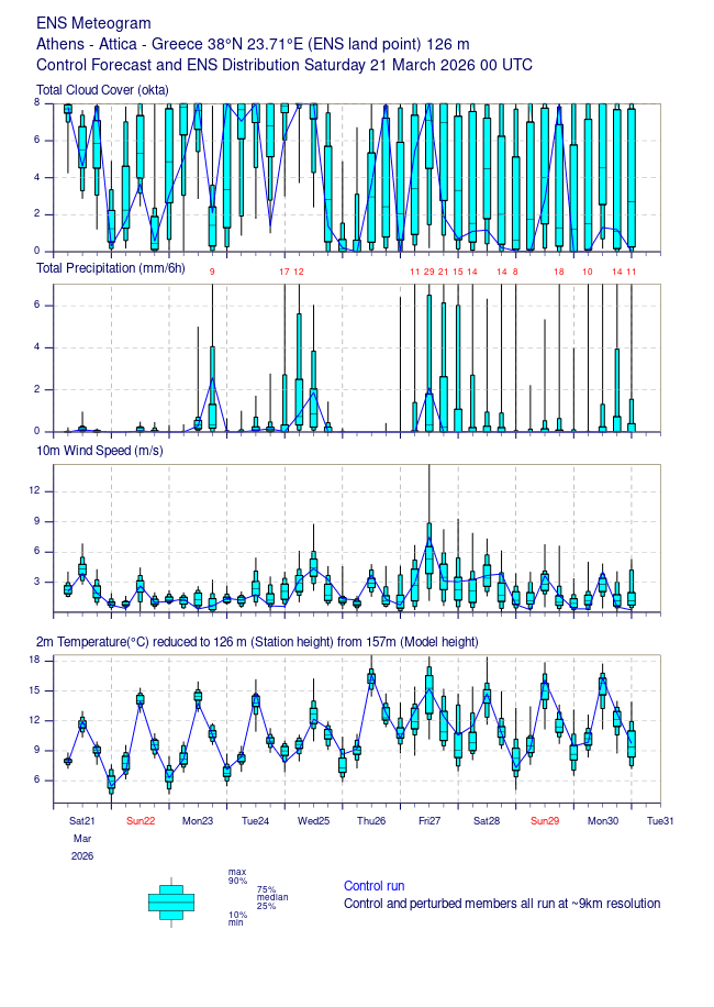 Η εκτίμηση προκύπτει από την ανάλυση του μετεωρολόγου Θοδωρή Κολυδά, ο οποίος βασίζεται σε πιθανολογικά προγνωστικά δεδομένα (ENS meteogram) για την Αθήνα.