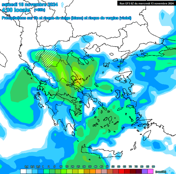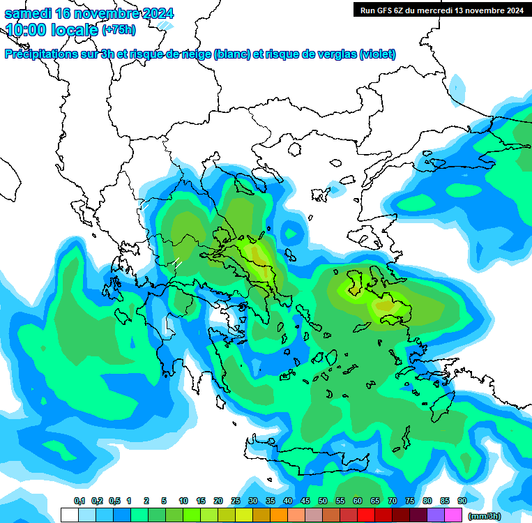 Όπως φαίνεται και στις παρακάτω εικόνες, από τις 4 τα ξημερώματα του Σαββάτου και για μερικές ώρες, αναμένονται αρκετά χιλιοστά βροχής στην περιοχή μεταξύ της Εύβοιας και του Παγασητικού.