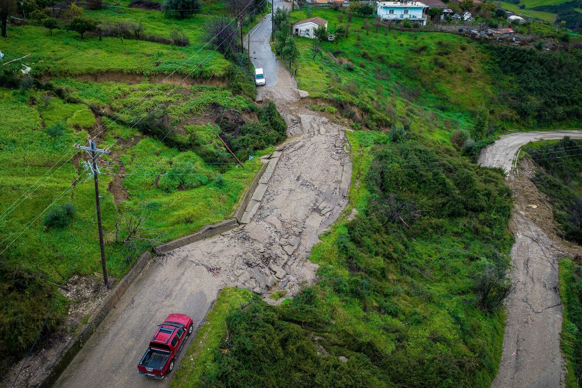 Οι ισχυρές βροχοπτώσεις προκάλεσαν καθιζήσεις και κατολισθήσεις, με αποτέλεσμα να κλείσουν και οι δύο είσοδοι του χωριού.
