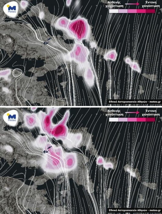 Σύμφωνα με τα επικαιροποιημένα στοιχεία της Εθνικής Μετεωρολογικής Υπηρεσίας, η κακοκαιρία θα συνεχιστεί κατά τη διάρκεια της αποψινής νύχτας και μέχρι τις πρωινές ώρες αύριο, ενώ θα παρουσιάσει επιδείνωση με ισχυρές χιονοπτώσεις και παγετό κυρίως στην βόρεια Αττική καθώς και σε Μαγνησία, Ανατολική Θεσσαλία συμπεριλαμβανομένων και των Σποράδων, Φθιώτιδα, Βοιωτία και Εύβοια.