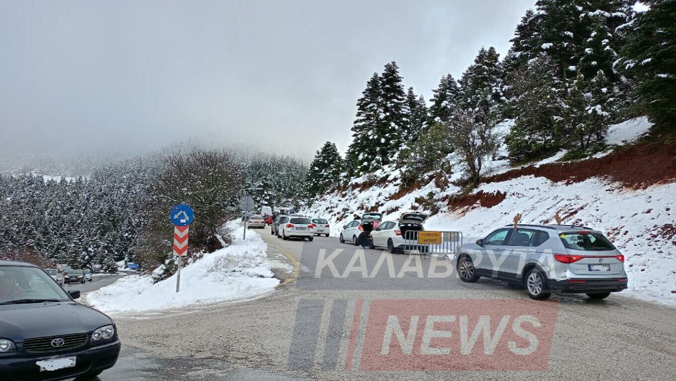 Λόγω της έντονης χιονόπτωσης και της μεγάλης κυκλοφοριακής κίνησης διακόπηκε προσωρινά η κυκλοφορία των οχημάτων από το 8ο χιλιόμετρο της επαρχιακής οδού Καλαβρύτων - χιονοδρομικού κέντρου, έως το πάρκινγκ του χιονοδρομικού.