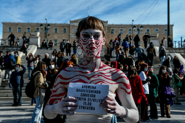 Διαμαρτυρία πραγματοποίησαν το πρωί της Παρασκευής τα Καλλιτεχνικά σχολεία της Αττικής στην πλατεία Συντάγματος, παρουσιάζοντας ξεχωριστά το καθένα δρώμενα κατά της κυβέρνησης.