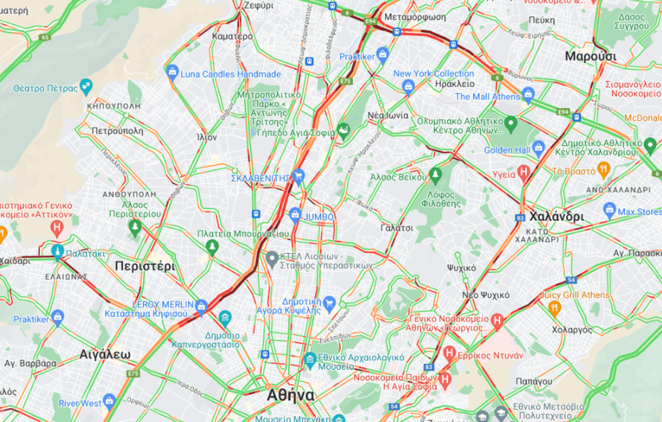Παράλληλα, μποτιλιάρισμα υπάρχει στη Λεωφόρο Κηφισού, στο ρεύμα της ανόδου, από το Περιστέρι μέχρι τη Νέα Φιλαδέλφεια.