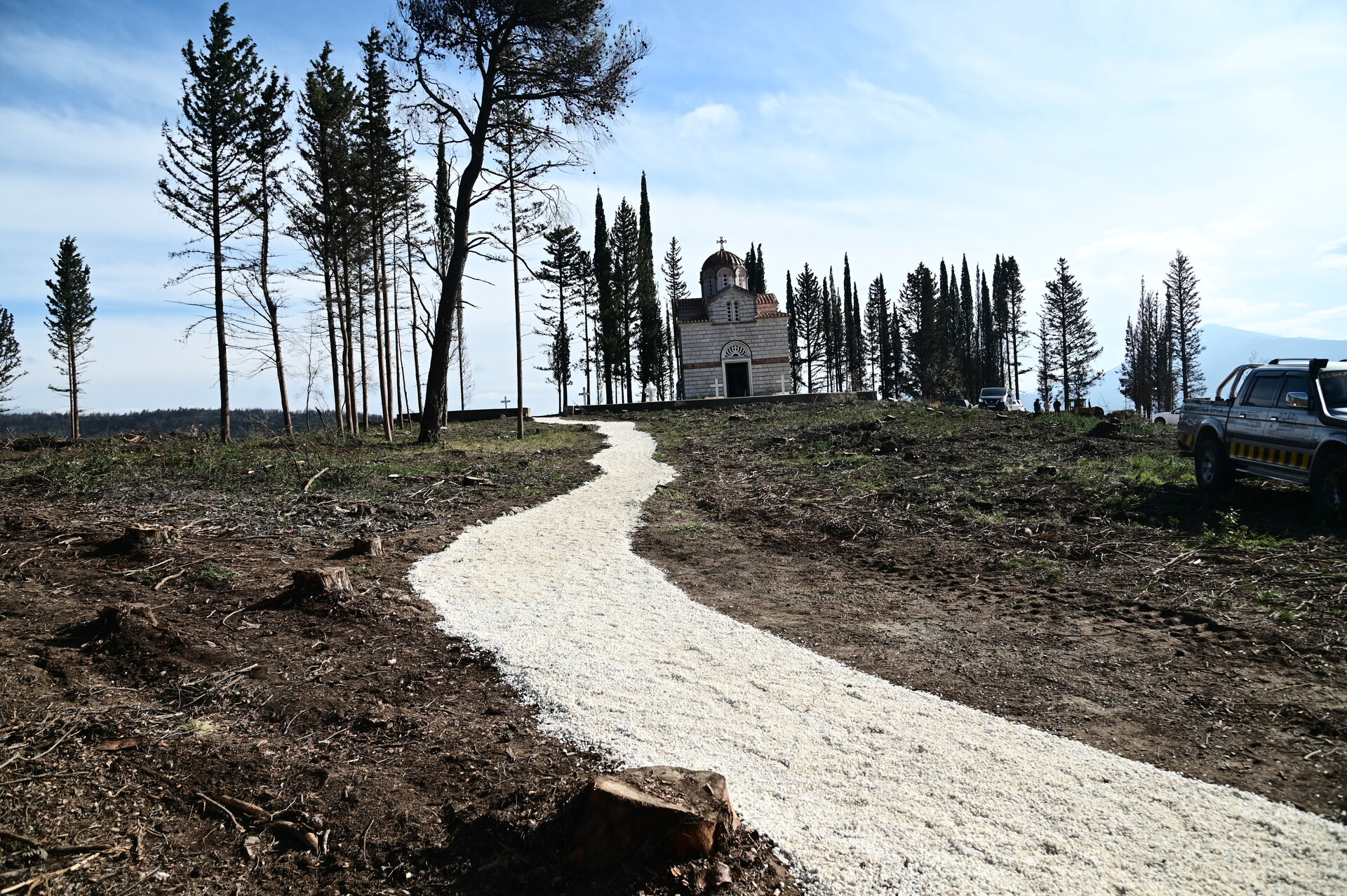 Με ταχείς κι εντατικούς ρυθμούς απομακρύνθηκαν οι πεσμένοι κορμοί και τα κλαδιά στο Τατόι, εν όψει της κηδείας τού έκπτωση βασιλιά Κωνσταντίνου.
