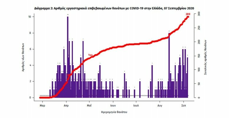 Έως τώρα, 289 άνθρωποι έχουν χάσει τη ζωή τους από κορωνοϊό στην Ελλάδα. Από τους θανόντες, οι 107 ήταν γυναίκες (37%). Η διάμεση ηλικία τους ήταν τα 78 έτη και το 96,2% είχε κάποιο υποκείμενο νόσημα ή/και ηλικία 70 ετών και άνω.