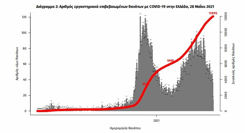 Οι νέοι θάνατοι ασθενών με COVID-19 είναι 40, ενώ από την έναρξη της επιδημίας έχουν καταγραφεί συνολικά 11.995 θάνατοι. Το 95.1% είχε υποκείμενο νόσημα ή/και ηλικία 70 ετών και άνω.