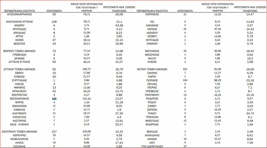 - Κεντρικός Τομέα Αθηνών: 157 κρούσματα