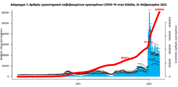 Συνολικά 15.829 νέα κρούσματα κορωνοϊού καταγράφηκαν στην Ελλάδα τις προηγούμενες 24 ώρες, ενώ άλλοι 65 άνθρωποι έχασαν τη ζωή τους.