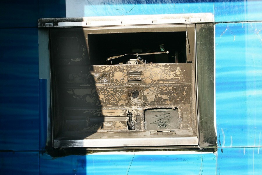 Έχοντας πλέον πρόσβαση στο εσωτερικό της τράπεζας, οι άγνωστοι κατευθύνθηκαν προς το ΑΤΜ, στο οποίο διοχέτευσαν ποσότητα αερίου και προκάλεσαν έκρηξη. Στην συνέχεια πήραν τα χρήματα που βρήκαν μέσα και έφυγαν με το κλεμμένο αυτοκίνητο, το οποίο εγκατέλειψαν περίπου 50 μέτρα μακριά από την τράπεζα, αφού προηγουμένως του έβαλαν φωτιά.