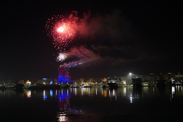 Ανάλογη η εικόνα και στον Πειραιά, όπου πυροτεχνήματα γέμισαν τον ουρανό, ενώ το πρώτο πλοίο κατέπλευσε στο λιμάνι.