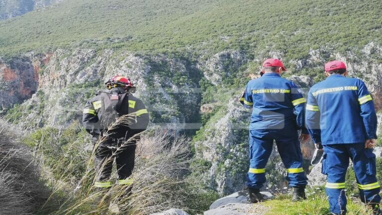 Άνδρες της ΕΜΑΚ ερευνούν την περιοχή γύρω από την τοποθεσία «πέντε δρόμοι» στον Ταΰγετο για να εντοπίσουν το ζευγάρι των Αμερικανών που έχει εξαφανιστεί από τις αρχές Φεβρουαρίου.