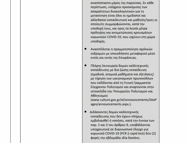 Συγκεκριμένα, όπως προβλέπεται από την Κοινή Υπουργική Απόφαση (ΚΥΑ) που δημοσιεύτηκε σήμερα αναστέλλονται όλες οι σχολικές εκδρομές τόσο εντός όσο και εκτός της Επικράτειας και με κάθε μεταφορικό μέσο.