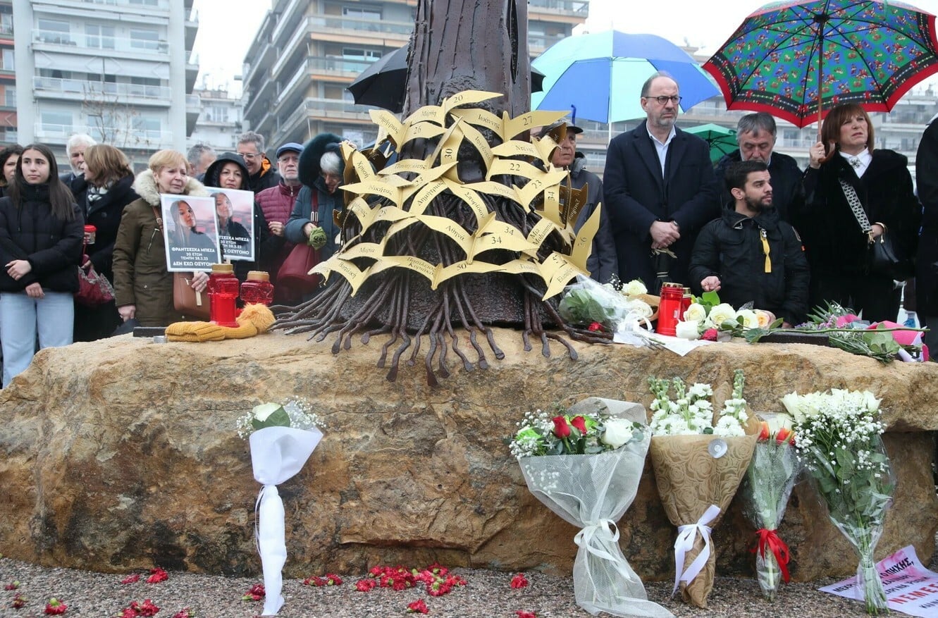 Σε κλίμα συγκίνησης πραγματοποιήθηκαν τον Μάρτιο του 2025 σε χώρο πρασίνου στη Νέα Παραλία της Θεσσαλονίκης τα αποκαλυπτήρια του γλυπτού με τίτλο «Το δέντρο της μνήμης», που είναι αφιερωμένο στα 57 θύματα των Τεμπών.