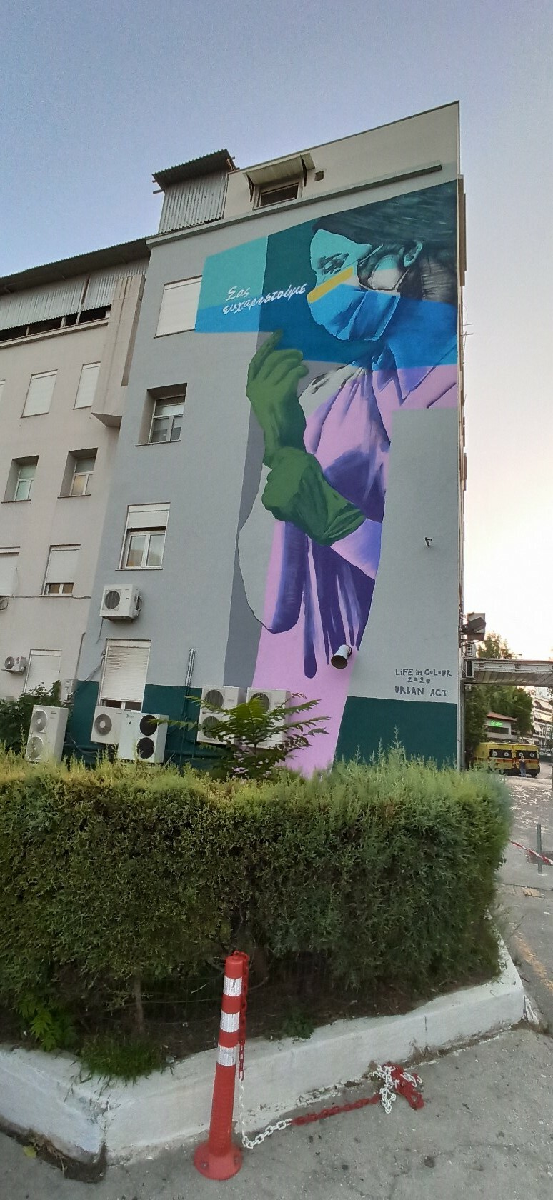 Το έργο με μήνυμα «σας ευχαριστούμε» αφιερώνεται σε όλο το προσωπικό των νοσοκομείων, που εδώ και μήνες μάχεται στην πρώτη γραμμή κατά της πανδημίας του covid-19.