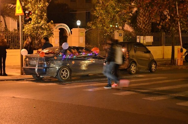Με γιρλάντες, μπαλόνια, φωτάκια και άλλα χριστουγεννιάτικα στολίδια και με διάφανη μεμβράνη «πακεταρίστηκαν» χθες τα οχήματα που είχαν παρκάρει παράνομα σε κεντρικούς δρόμους της Θεσσαλονίκης. Η δράση ήταν μια πρωτοβουλία των Streetpanthers, γνωστοί και από τα αυτοκόλλητα «Είμαι γάιδαρος παρκάρω όπου γουστάρω».