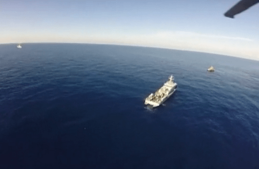 Στην περιοχή επιχειρούν μία φρεγάτα του Πολεμικού Ναυτικού, τρία παραπλέοντα πλοία και ένα ελικόπτερο του Λιμενικού, σύμφωνα με σημερινή ανακοίνωση.