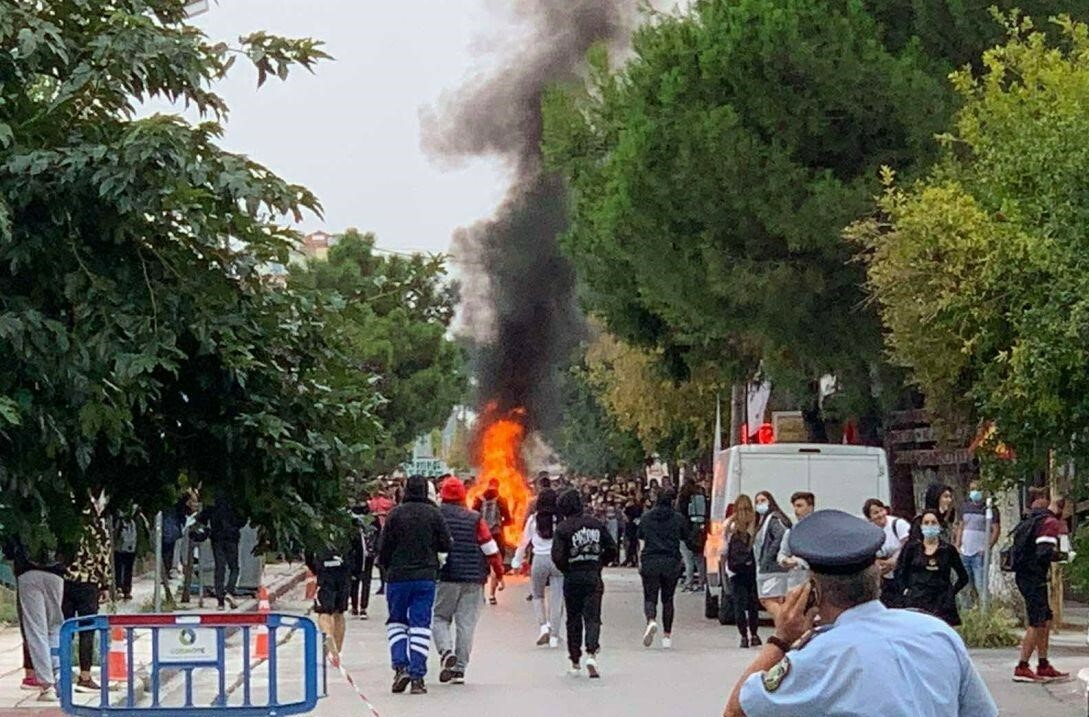 Πιο συγκεκριμένα, τα άτομα, φορώντας κουκούλες, έστησαν οδοφράγματα έξω από το σχολείο και έβαλαν φωτιές.