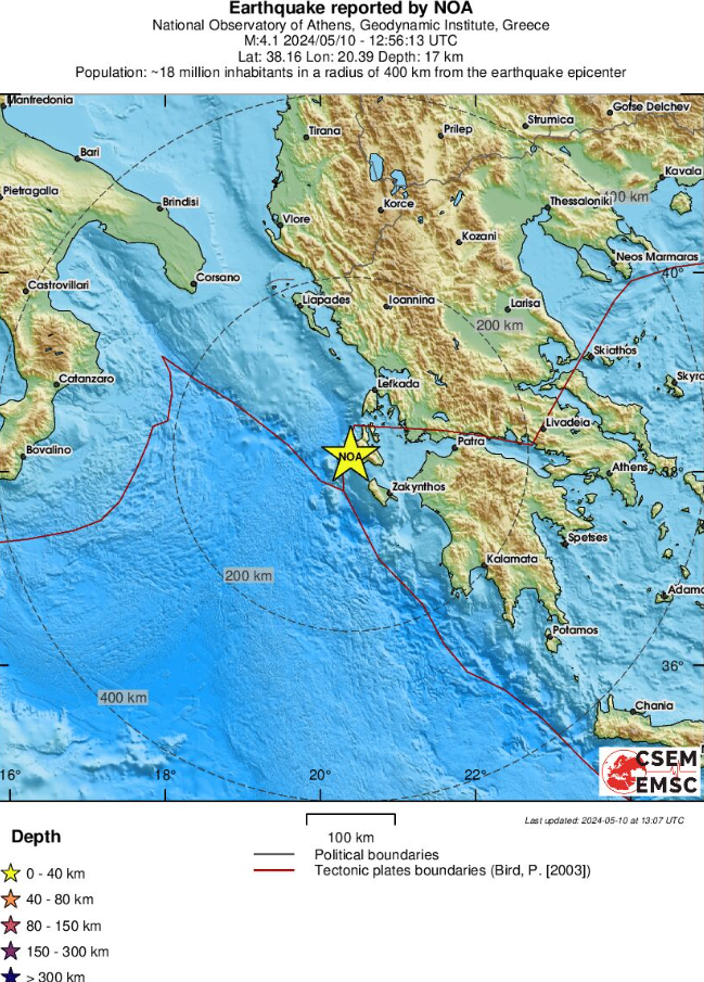 Νέος σεισμός μεγέθους 4,1 Ρίχτερ σημειώθηκε πριν από λίγο στην Κεφαλονιά.