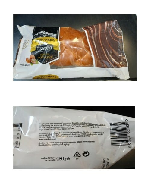 Ο ΕΦΕΤ και ειδικότερα η Περιφερειακή Διεύθυνση Δυτικής Ελλάδας, στο πλαίσιο του Προγράμματος «Επίσημος Έλεγχος για την Παρακολούθηση των Επιπέδων Προσθέτων Τροφίμων και Αρωματικών Ουσιών σε Τρόφιμα», προέβη σε δειγματοληψία τροφίμου με τα στοιχεία: «Τσουρέκι με γέμιση πραλίνα φουντουκιού – μικρές φάρμες του βουνού» με ημερομηνία ανάλωσης κατά προτίμηση πριν από τις 21/05/25 και αριθμό παρτίδας Lot 066A1, συσκευασίας καθαρού βάρους 480g, το οποίο παράγεται και συσκευάζεται στην Ελλάδα για λογαριασμό της ΜΑΡΚΕΤ ΙΝ Α.Ε.Β.Ε. που εδρεύει στην ΒΙ.ΠΑ. Μαρκοπούλου Μεσογαίας.